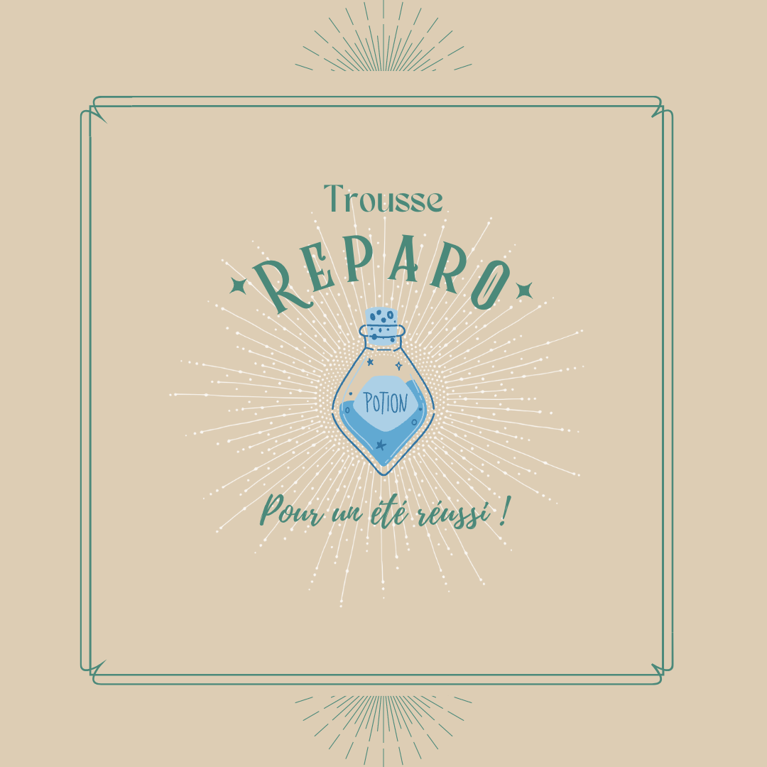 L’objectif de Reparo est de vous rendre autonome sur toutes vos urgences et soucis de l’été et de vous permettre de vous constituer une trousse d’urgence à emmener en vacances, utilisable pour les petits et les grands, et dans laquelle vous saurez vous servir de chaque élément et dans quelle situation les utiliser.